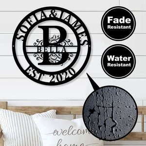 Customize your name metal monogram sign with your name, initial letter and year, and add the information to the text box.